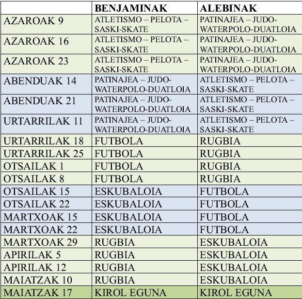 Hau da ikasturte honetarako prestatu dugun egutegia: