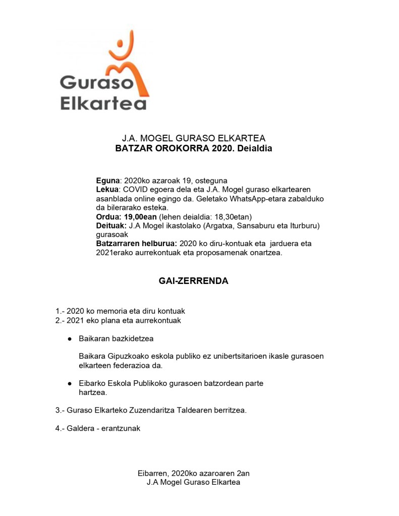 Aurreko batean jakinarazi genizuen bezela, Mogel Guraso Elkartea urteetan Sortzen izeneko Guraso Elkarteen Federazioko partaide izan da, baina Sortzen Gipuzkoan desagertu egin da eta ordutik gure Guraso Elkartea ez dago federatuta.